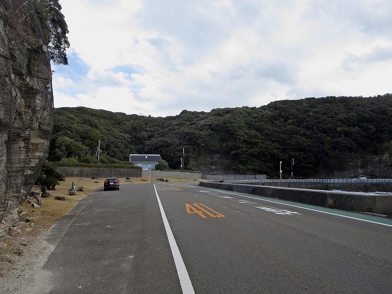 時折波しぶきが防波堤を越えて道路に打ち付けてくるので