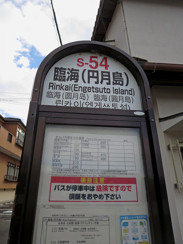 円月島の最寄りバス停の臨海に到着。