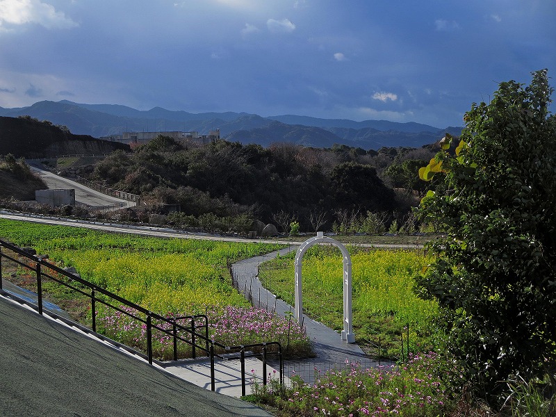 階段の下には菜の花畑が広がってました。