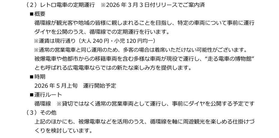 2026年3月28日(土)、広島電鉄の循環線が開業しました。