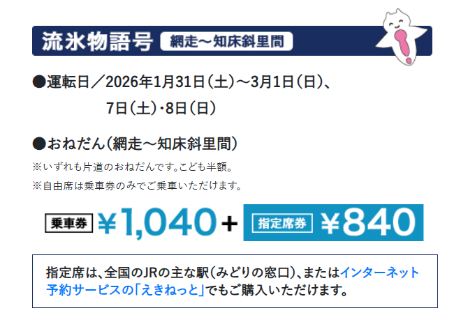 車内からオホーツク海に浮かぶ流氷を眺める事が出来ます。